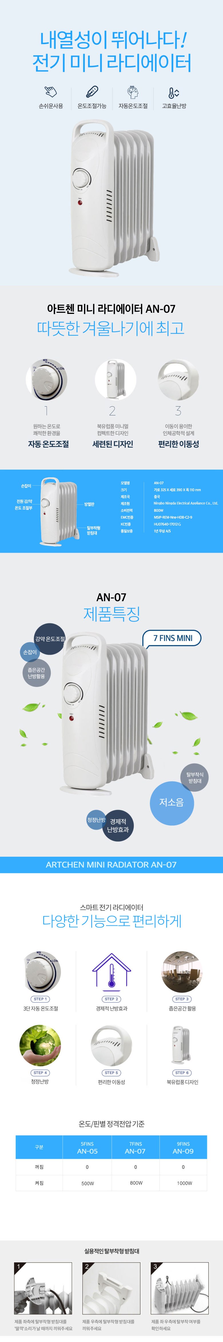 | 품명 및 모델명 | 아트첸 전기 미니 라디에이터 7핀 / AN-07 |