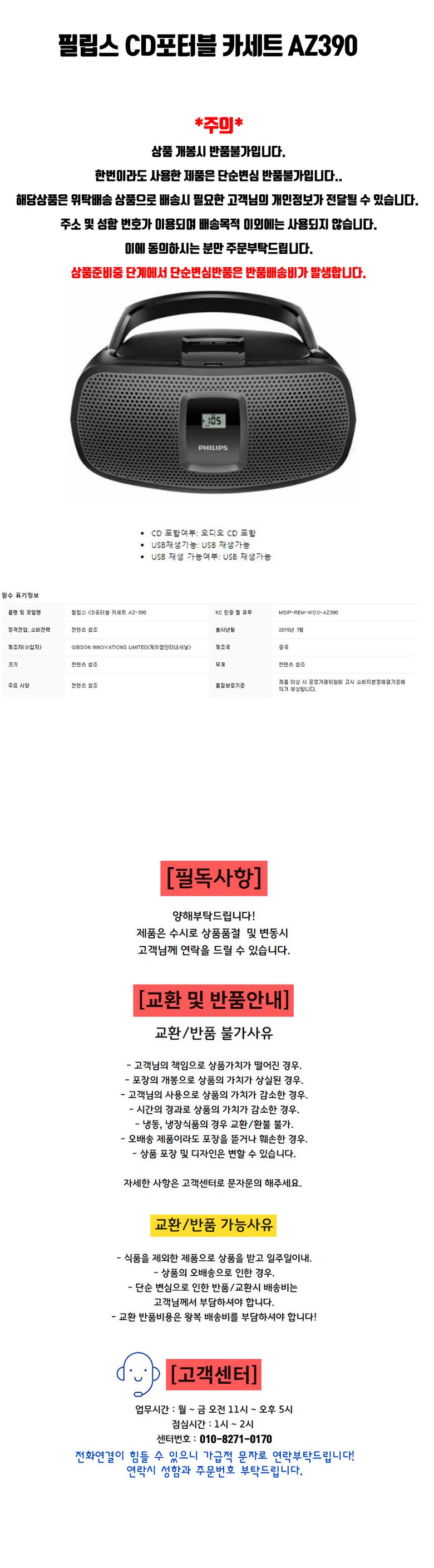 필수 표기정보 품명 및 모델명 오디오 CD플레이어 BZ-T7800 Plus KC 인증 필 유무 본품: R-R-BZI-BZT7800Plus / 건전지 : B052R221-4002 / 전원어댑터 : HU10379-17032A, MSIP-REM-GVE-GM42-120350-7A 정격전압,…