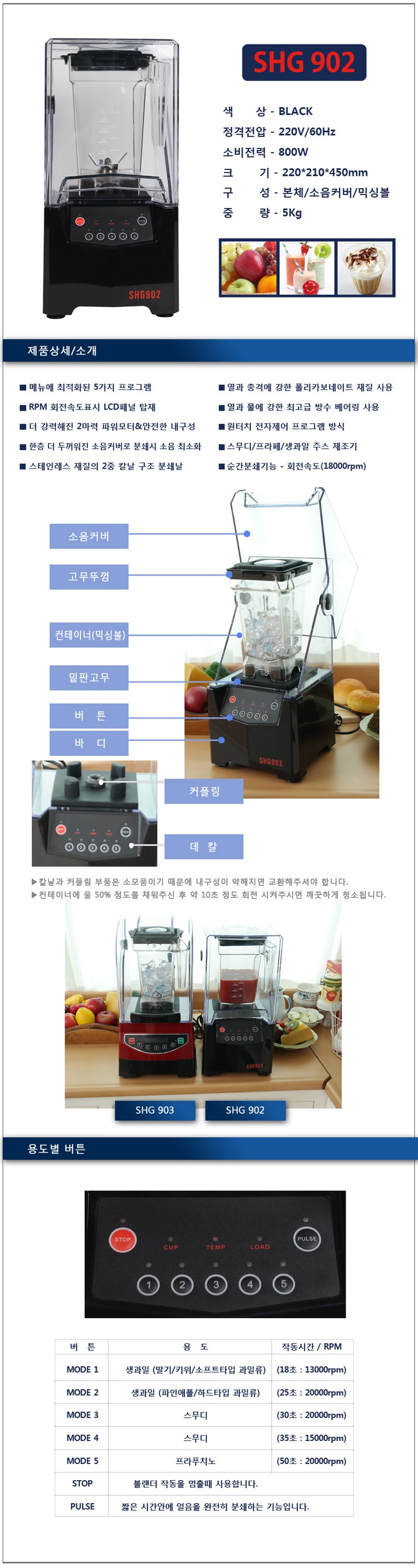 | 정격전압, 소비전력 | 220V / 800W |
