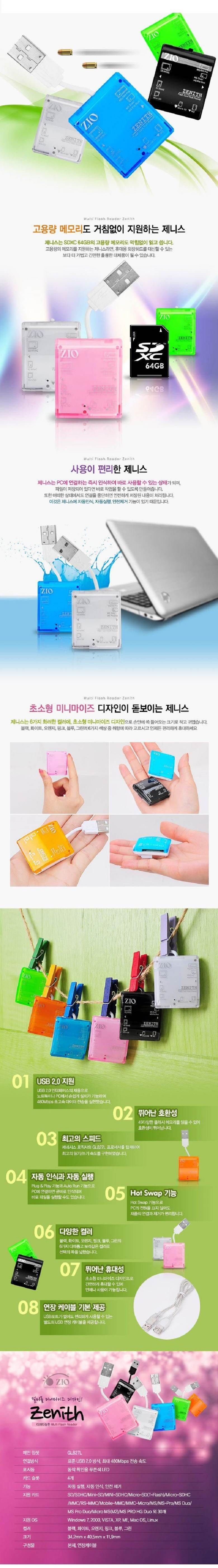 | 주요 사양 | 외장형 멀티리더기 / 4슬롯 / USB2.0지원 / SD/SDHC/SDXC/microSD/microSDHC/microSDXC/miniSDHC / 메모리스틱 / 메모리스틱Duo |